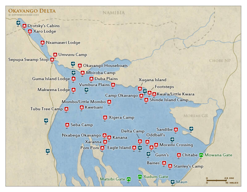 Botswana bant massatoerisme en heeft de Okavango Delta daarom opgedeeld in 35 privéconcessies die aangestuurd worden door kleinschalige lodges die de concessie met elkaar delen. Het aantal bezoekers is gelimiteerd. Elke lodge heeft zijn eigen landingsbaan voor kleine chartervliegtuigjes. Het maakt de Okavango Delta erg exclusief. De lodges dragen een enorme verantwoordelijkheid voor het behoud van flora en fauna, de paden en het opleiden van rangers en overig personeel. De prijzen zijn bijgevolg hoog…