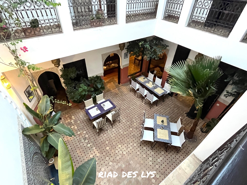 De mooiste riads, zoals Riad l’Oiseau du Paradis, Riad Farhan, Riad Kasbah & Spa zijn erg gegeerd en snel volgeboekt. Wij overnachten in Riad Boustane, nog net binnen de Medina gelegen. Een prima plek, met schitterend dakterras en heel lieve mensen. Bij ons tweede bezoek aan Marrakech, in maart 2025 verblijven we in Riad des Lys, in de wijk Kasbah.