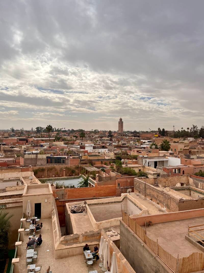 Veel riads hebben schitterende dakterrassen waar je vaak ook als niet gast iets kan eten of drinken.