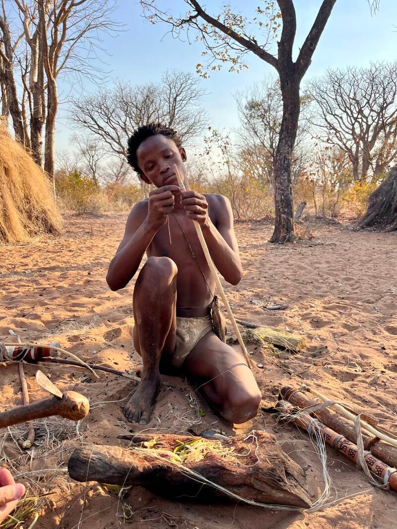 Wij kwamen aan na de middag bij de Ju/‘Hoansi-San en kozen voor een craft workshop.