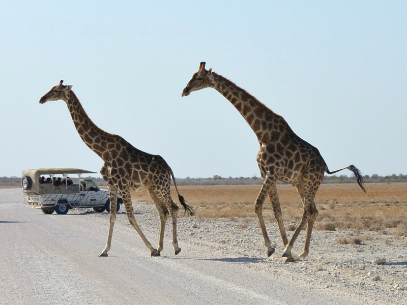 Zelf rijden in Etosha is heel gemakkelijk. Er loopt een duidelijke route van west naar oost, met veel mogelijkheden om van deze hoofdweg af te gaan en een kleine of grote lus te rijden. Vrijwel alle wegen in het park zijn onverhard, maar prima onderhouden dus goed te rijden, ook voor gewone auto’s. De waterpoelen zijn de plekken bij uitstek om halt te houden om te kijken of er iets interessants te zien is, groot of klein!