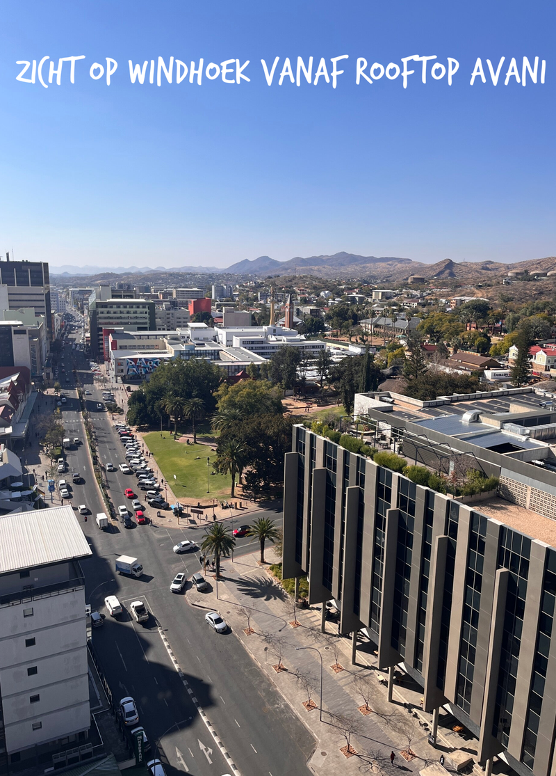 We leveren de jeep af en worden naar het Avani hotel in het centrum van Windhoek gebracht. Het voelt erg raar om terug in de stad te zijn, na weken op eenzame wegen zonder veel medemensen.