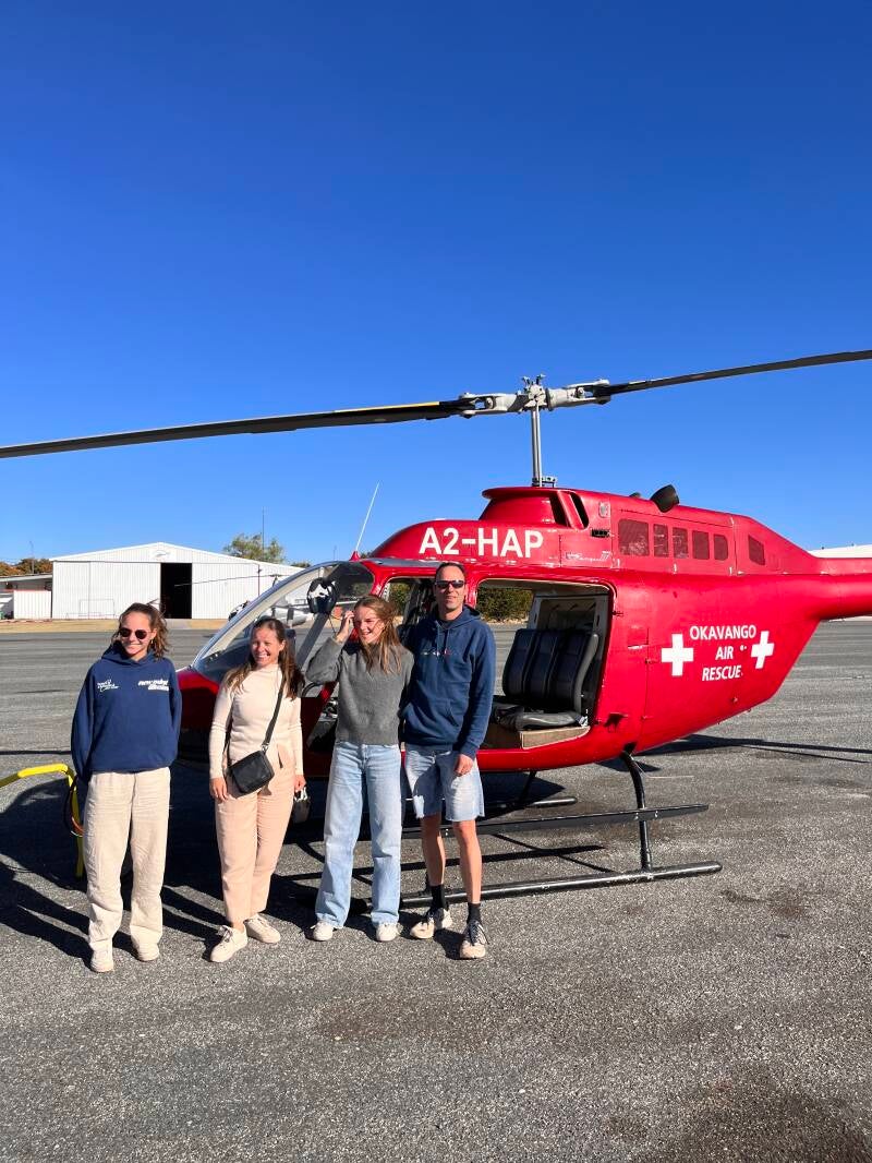 Om 16h worden we opgepikt door Helicopter Horizons. We gaan een helikoptervlucht 🚁 maken over de Okavango Delta.