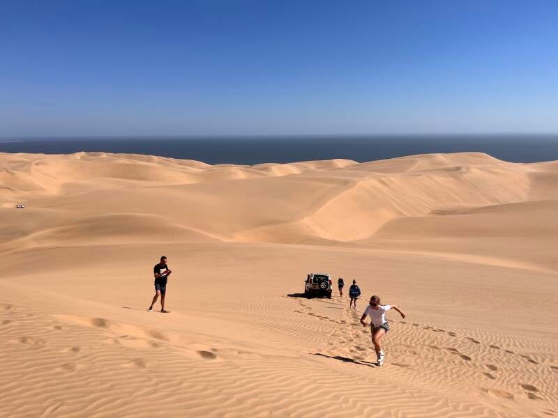 Van hieruit gaan we op jeeptour via de organisatie Levo tours, naar Sandwich Harbour, waar 100 meter hoge duinen de Atlantische oceaan ontmoeten.