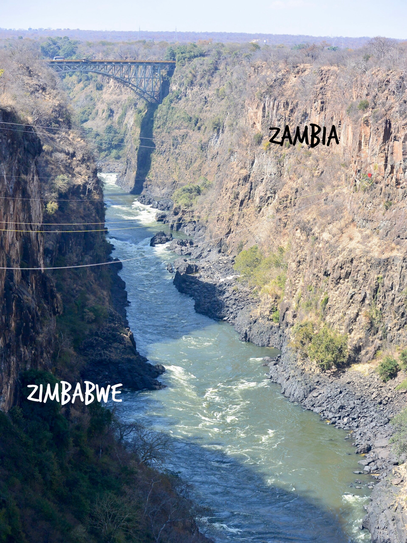 Victoria Falls bestaat eigenlijk uit vijf afzonderlijke watervallen, waarvan er vier zich aan de Zimbabwaanse kant van de grens bevinden. Het is een plek voor avontuurlijke sporten. Op de Zambezi kan je raften en kanoën, van de Zambezi bridge kan je bungeejumpen en ziplinen. Een vlucht boven de watervallen is ook populair.