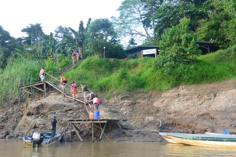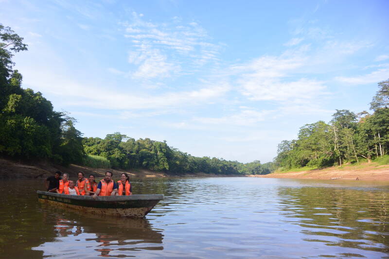 Het wordt een topervaring! Onze groep is relatief klein, ongeveer 15 medereizigers van over de hele wereld. Het kamp is wel zeer basic, we slapen in een open hut met muskietennet. We moeten onze spullen in tonnetjes opbergen want de apen hebben anders vrij spel. Wij hielden erg van de relaxte sfeer in het camp en de gidsen zijn geweldig. We maken verschillende boottochten in de vroege ochtend en late avond. We maken ook hikes in het bos en de gidsen betrekken onze meiden enorm bij de natuur.