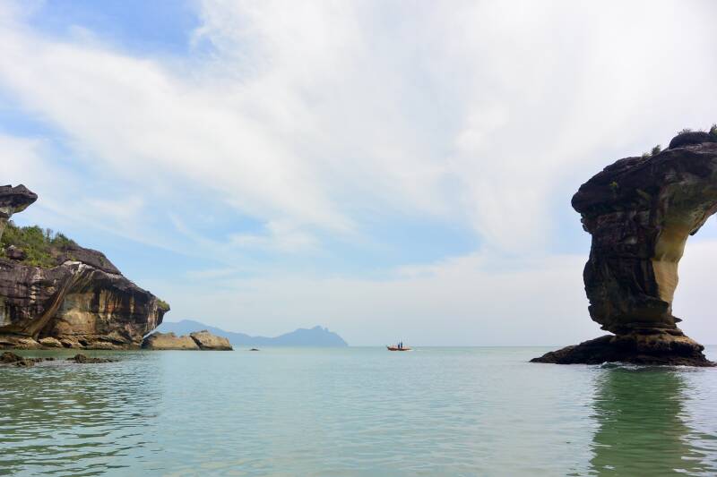 Wij maken deze excursie vanaf Damai en gaan per boot in plaats van over de weg. Erg hobbelig en bij momenten wel spannend op de nogal ruwe zee. Het is best een eind varen en voor onze dochters zal dit het leukste deel van de uitstap blijken…