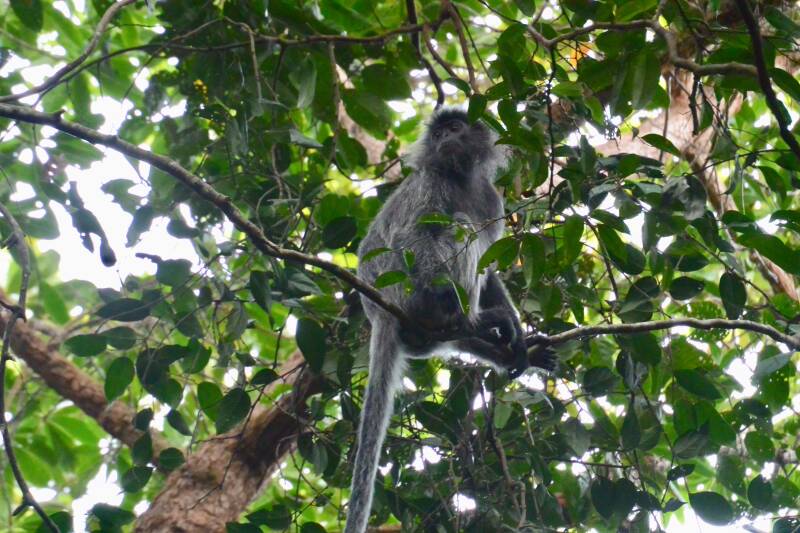 Eén van de hoofdredenen om naar Bako te gaan, is de kans om de ernstig bedreigde proboscis (neusaap) van dichtbij te zien. Je hebt nog diverse andere aapsoorten in het natuurpark. De silvered-leaf aap is een mooie soort, die je vaak langs de kust in de mangroves tegenkomt. Ook heb je veel 'standaard' long-tail makaken. Die worden over het algemeen als wat minder schattig ervaren, en dat hebben we lijfelijk mogen ondervinden. Ze pikken het eten gewoon uit je rugzak!