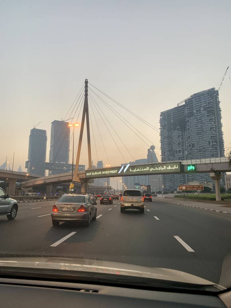 We kijken onze ogen uit tijdens de korte rit (13 km) naar ons appartement. We rijden via een lange brug over Dubai Creek, de rivier waar Dubai rond gebouwd werd. We passeren the Frame, een gigantisch kader, gebouwd in 2018 op de grens van het oude en nieuwe Dubai.