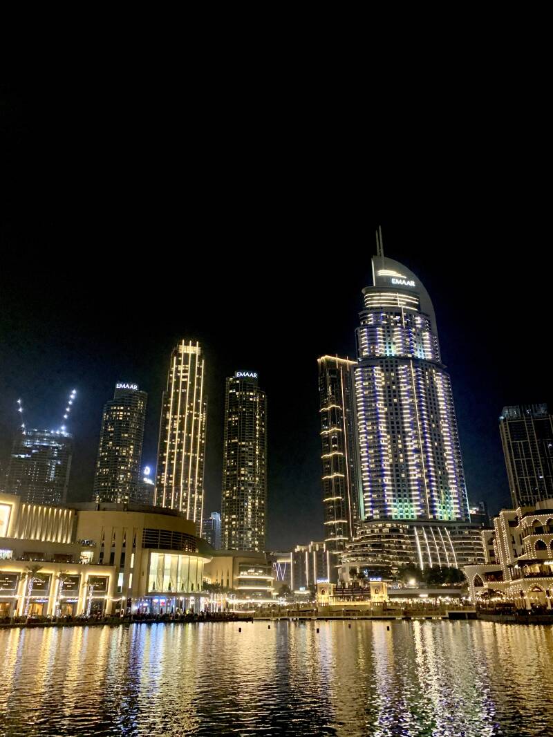 Na al dat shoppen, keren we even terug naar het appartement om wat te relaxen en te zwemmen, gecombineerd met apero-time. We eten onze zelfgemaakte spaghetti en daarna is het tijd voor een tweede ronde Burj Khalifa, dit keer in het donker. Opnieuw nemen we de metro. Zara laat nog een mooie henna tattoo zetten in de mall. Verder genieten we aan de boardwalk van de fonteinshow en prachtig verlichte torens.