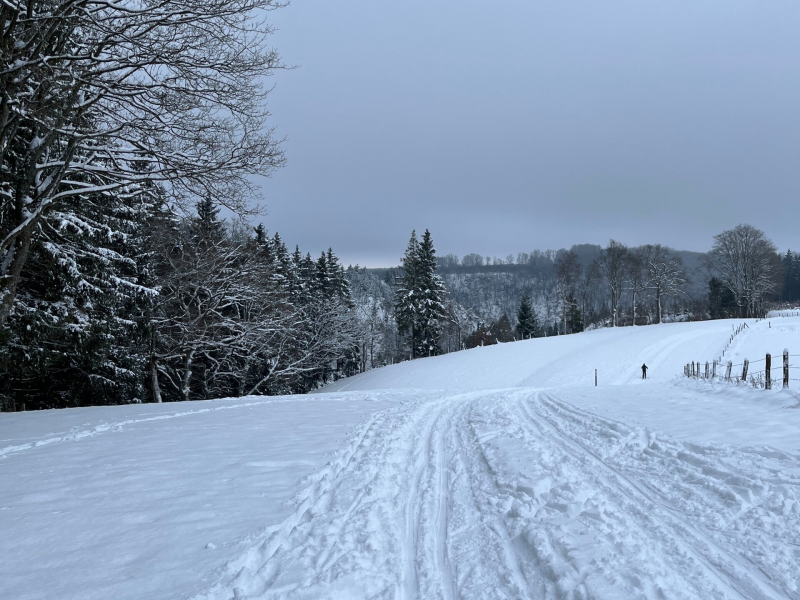 Deze piste was onze eerste keuze omwille van de minder grote drukte in vergelijking met de Baraque Michel, en de gunstige ligging op de zuidhelling van de Hoge Venen. Hier vind je een uitgestrekt sporennet in een wonderbaar woud- en veenlandschap.