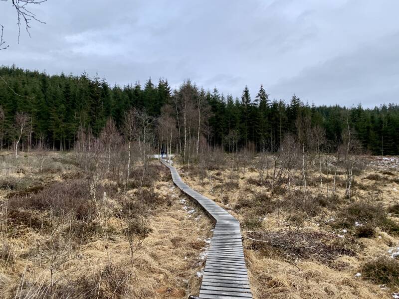 Zoals gezegd wandelen de dochters niet graag, dus skipten ze de vorige wandeling met plezier. Toch wilden we ze de schoonheid van het veen laten zien, dus gingen we nog voor een kort wandelingetje aan de bekende Baraque Michel. We kozen de gemakkelijke en korte wandeling “Fagne de Poleur” (4,5 km). Deze route loopt gedeeltelijk over houten vlonderpaden en is ook toegankelijk voor mensen met beperkte mobiliteit.