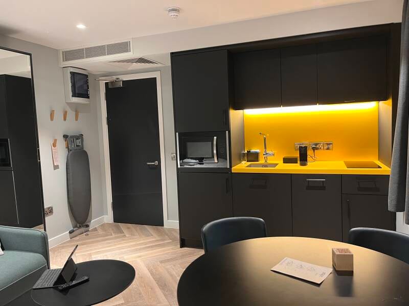 Overnachten in het centrum van de stad is niet goedkoop. Wij kiezen het centraal geleden Staycity Aparthotel City Centre. De studio’s hebben een kitchenette. Vlakbij zitten tal van gezellige pubs.