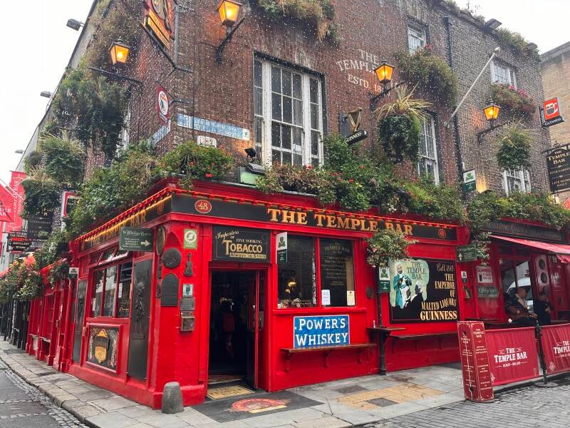 De bekendste en tevens meest gefotografeerde pub van de wijk is de Temple Bar pub, die gemakkelijk te herkennen is aan zijn opvallende rode gevel met geel gouden letters. Dit café beschikt over één van de grootste verzamelingen aan dranksoorten ter wereld, met honderden soorten whiskey’s en bieren.