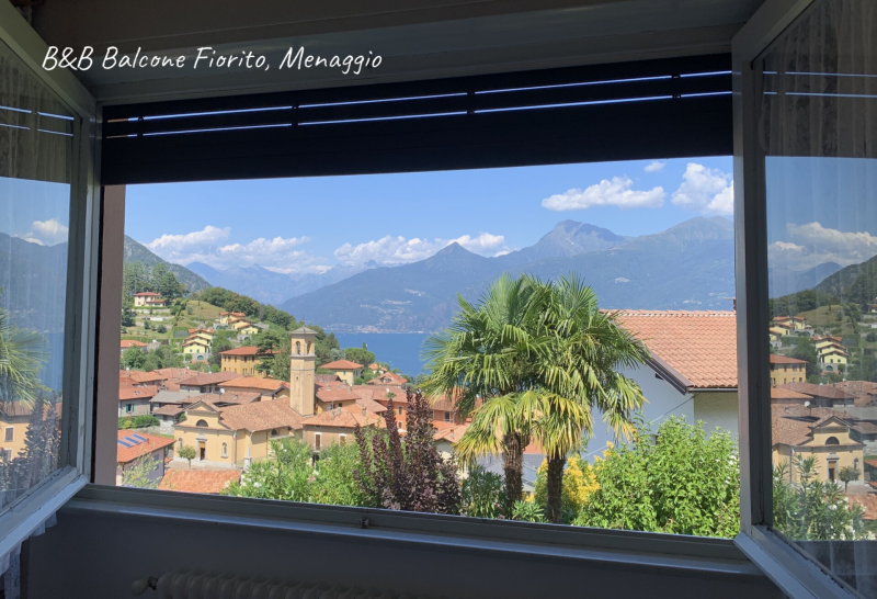 Menaggio: B&B Balcone Fiorito Menaggio, gelegen op de heuvel op 5 minuten rijden van Menaggio (auto nodig). Mooie tuin en zicht op het Comomeer, de gastheer gaf volop tips over de streek en restaurantjes.