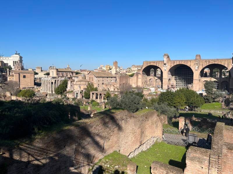 Er is best wel wat bewaard gebleven en met enig inbeeldingsvermogen zie je wat voor prachtig stuk dit moet zijn geweest. Het is aangenaam wandelen op het uitgestrekte ruïneveld van het Forum Romanum wandelen met highlights als de Tempel van Vesta en het huis van de Vestaalse Maagden, de Tempel van Castor en Polllux, de boog van Titus en de Curia Julia.