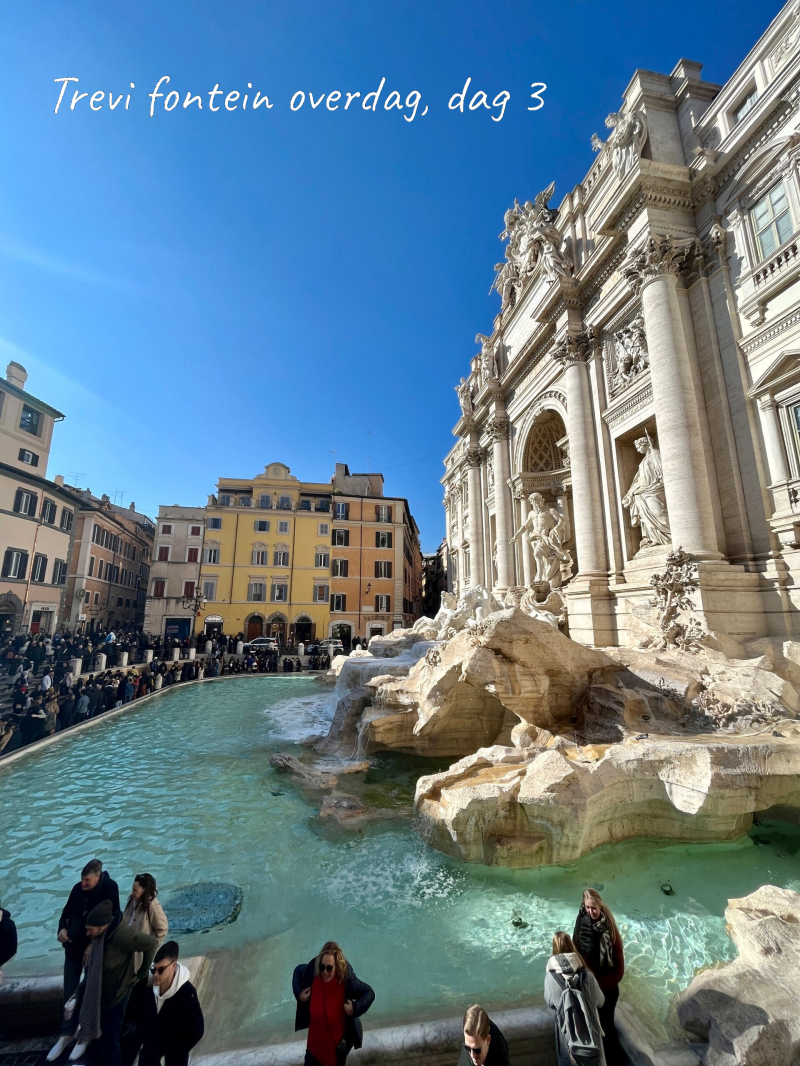 Dit is waarschijnlijk één van de bekendste fonteinen in de wereld en in de avond prachtig verlicht. De legende gaat dat als je een muntje met je linkerhand over je rechter schouder gooit, je ooit samen met een geliefde terugkomt naar Rome. Elke nacht wordt de fontein geleegd en het bedrag gaat naar een goed doel. Het water dat de fontein voedt komt van een aquaduct dat Augustus liet bouwen.