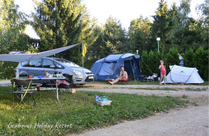 - Rakovica (Plitvici meren), 4 nachten Holiday Resort Grabovac, een zeer mooi domein met huisjes rond het zwembad en poolbar. Klein meer op het domein en zeer ruime kampeerplekken. Mooie speeltuin. Goed restaurantje langs de weg.