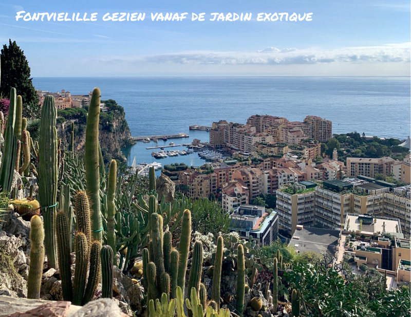 De Jardin Exotique, de exotische cactussentuin in Fontvieille biedt prachtige zichten op de stad en de kust. Deze tuin mag je echt niet overslaan. De tuin ligt hoog tegen de rots en je komt er voorbij bij het binnenrijden van Monaco. Er is een parkeergarage vlakbij. De tuin wordt sinds 2022-23 volledig gerenoveerd. De heropening wordt verwacht einde zomer 2025. In het voorjaar staan de cactussen uitbundig in bloei.