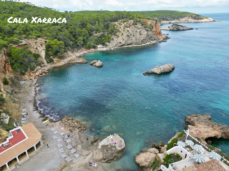 Hier tref je een perfect ingesloten baaitje met kristalhelder water en een hele toffe chiringuito. Het strandje is wel bezaaid met keien en veel posidonia, zeegras, dat je wel op meerdere stranden op Ibiza aantreft.