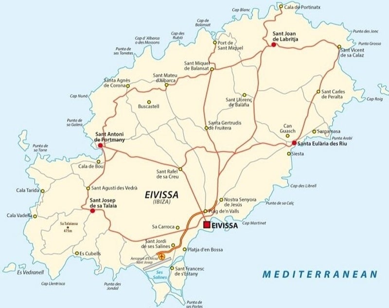 ✈️ De luchthaven van Ibiza ligt op 6 kilometer van Ibiza-stad. Vanaf de luchthaven is het hooguit een halfuur rijden naar de meesten badplaatsen.