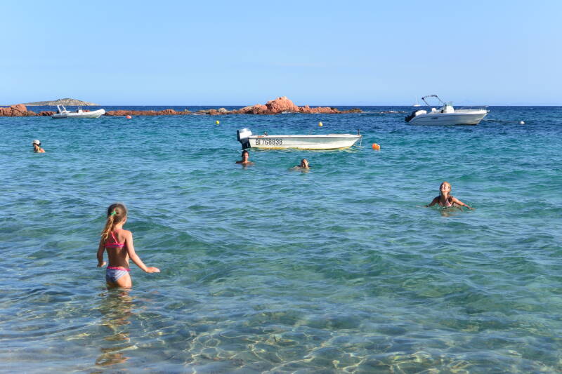 Onze laatste dag in Corsica brengen we door op een paradijselijk strand, met de kleuren van een tropische lagune. Zoals gezegd, moeilijk te bereiken over land, dus hebben we een taxiboot gebeld. Al om 8 uur ‘s morgens vertrekken we, want het kan erg druk worden op het strand. Dat bleek een goeie zet want het strand is nog zo goed als verlaten bij aankomst. We zwemmen en vermaken ons de hele voormiddag en zien steeds meer mensen toestromen. Kort na de middag varen we terug en ‘s avonds kiezen we nog een laatste keer een restaurantje om deze reis afsluiten.