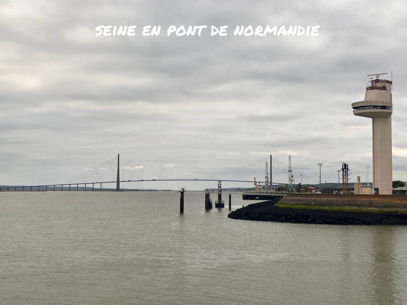 Hiervoor moeten we over de machtige Pont de Normandie brug, over de monding van de Seine. De brug heeft een totale lengte van meer dan 2 km en hoogte van 215 meter. Je kan ook te voet of met de fiets over de brug rijden.
