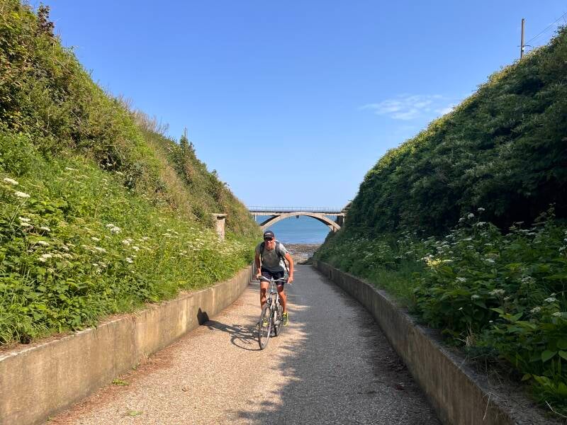 Het fietstochtje naar Fécamp vanuit Yport is kort (7 kilometer) maar best pittig, dus afstappen was een paar keer aan de orde.