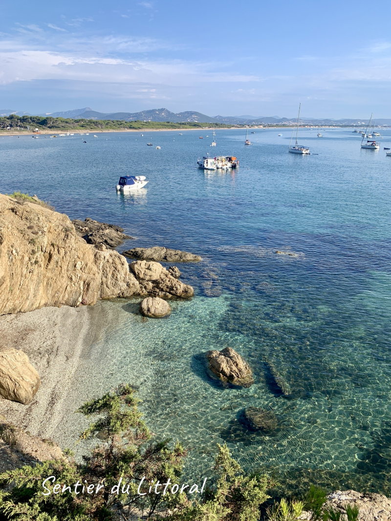 - Le Sentier du Littoral loopt rondom het hele schiereiland. Wij wandelden de oostkant af. Vanaf de camping naar het Plage de La Badine (900m) en dan volgden we een heel eind het pad langs veel kreken en baaitjes met helder water. We liepen tot het uiterste noorden tot aan de Bélambra club en dan via de Tour Fondue terug.