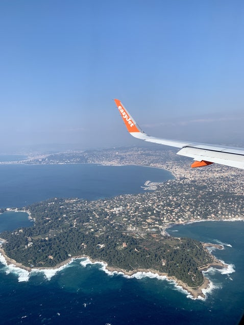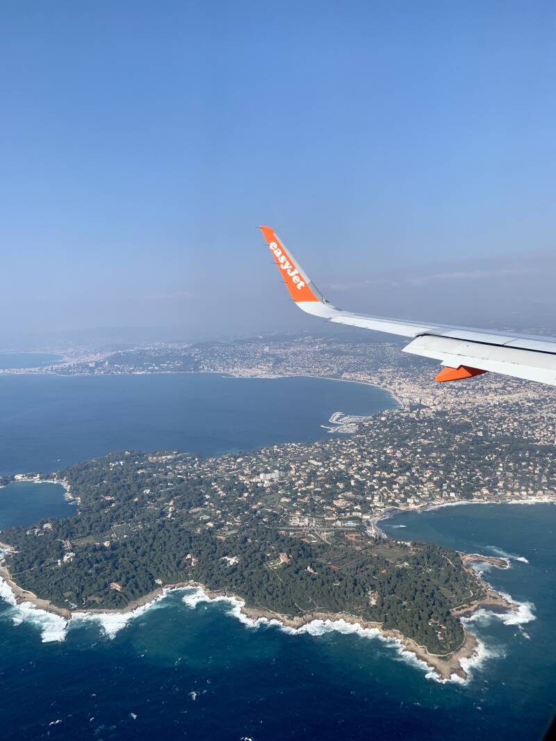 De vlucht duurt een uur en veertig minuten en onderweg genoten we al van een prachtig zicht op de besneeuwde bergen, het mooie Lac de Sainte Croix en de Côte d’Azur.