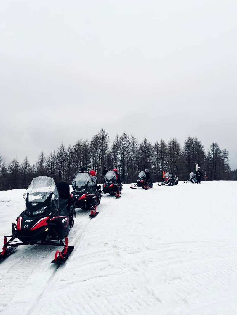 Je kan kiezen tussen een tocht bij zonsopgang, met ontbijt, of een tocht bij zonsondergang, als de pistes net gesloten zijn. Wij kozen voor de laatste, al zagen we geen sunset, maar sneeuw… Reservatie via de website Motoneige.