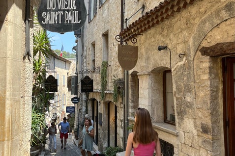 Het kunstenaarsdorpje Saint-Paul de Vence verderop ligt hoog op de top van een rots. Wandel door nauwe steegjes met kunstgalerijen, winkeltjes en restaurantjes. In de jaren 20 kwam Picasso hier en vele (toen nog onbekende) kunstenaars betaalden hun maaltijd met een kunstwerkje.