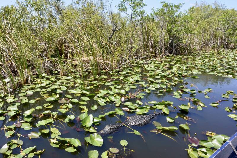 Heel populair zijn de vele airboat tours die aangeboden worden. Wij willen absoluut de commerciële tochten met krokodillenshows vermijden en kiezen voor een semi privé tocht bij The River of Grass. Als we de dag ervoor willen reserveren, blijken alle tours al volzet. Gelukkig krijgen we ‘s morgens een mailtje dat er toch nog plaats is. De twee andere toeristen komen niet opdagen en zo krijgen we een privé tocht met gids Robbie, die geboren is in de streek en heel veel weet te vertellen over de fauna en flora. We zien veel krokodillen, ook baby’s, en uiteraard enorm veel vogels. We hebben blijkbaar geluk met het weer. Het is 'maar' 26 graden en erg zonnig en dan komen de krokodillen lekker zonnen boven water. We vonden dit zeker één van de mooiste belevenissen van deze reis.