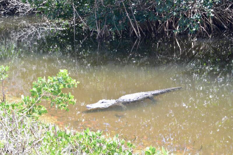Verderop langs de Tamiani weg spotten we enorm veel krokodillen die liggen te zonnen langs de weg bij het kanaal.