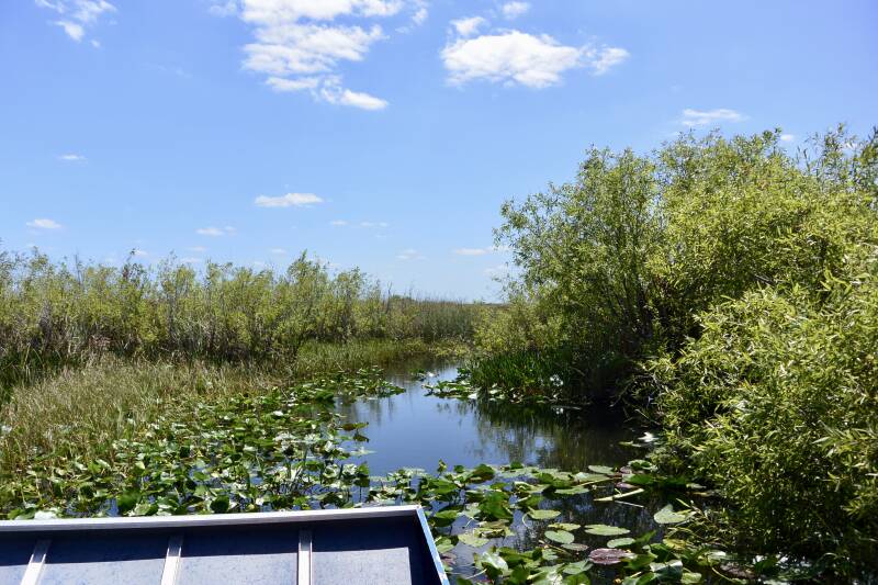 De Everglades zijn geen moeras. Het is een “rivier van gras”, een 80 km brede prairie die periodiek onder water staat. De bron van de rivier ontspringt noordelijker in Florida en het gaat hier om de traagst stromende rivier ter wereld.