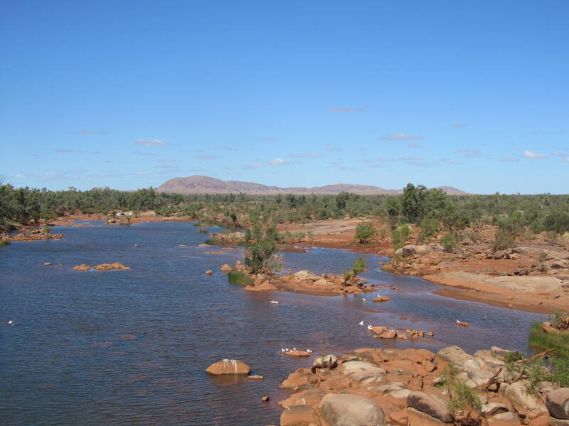 Van Karijini NP gaat het naar Millstream NP, 250 km langs onverharde wegen, zonder ook maar één stadje onderweg. We rijden door een kurkdroog landschap bij 35° en vinden geen geschikt picknick plaatsje.