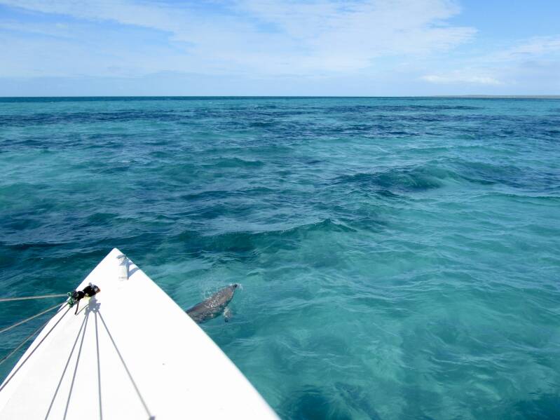 Shark Bay staat op de Unesco Werelderfgoedlijst en is enorm rijk aan zeeleven. Er leven dugongs, zeekoeien die er zich tegoed doen aan het zeegras. We zijn net iets te vroeg voor het zeekoe seizoen, dat in september, de lente begint. De zeekoeien trekken op hun beurt haaien aan en verder is dit een enorm goede plek om reuzemanta’s of reuzeroggen te spotten. Ook walvissen en zeeschildpadden zijn te zien in het gebied.