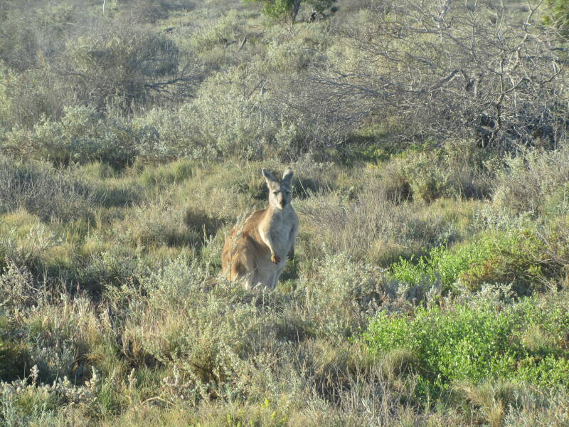 In de late middag zien we bij Mangrove Bay veel vogels, emoes en ook kangoeroes. Die komen bij ineens van overal tevoorschijn als de avond valt.