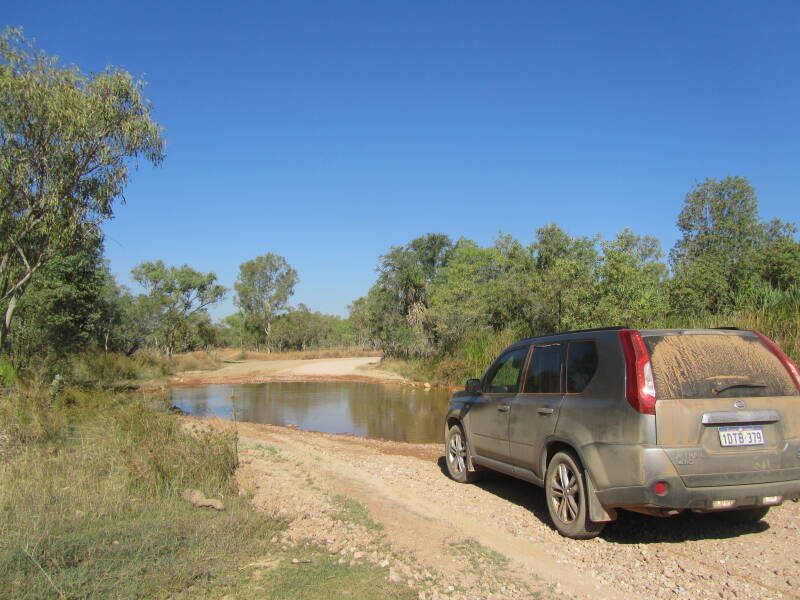 Daarna verlaten we de Gibb River Road, en nemen de afslag naar Fitzroy Crossing, 146 km off-road langs weg 350.