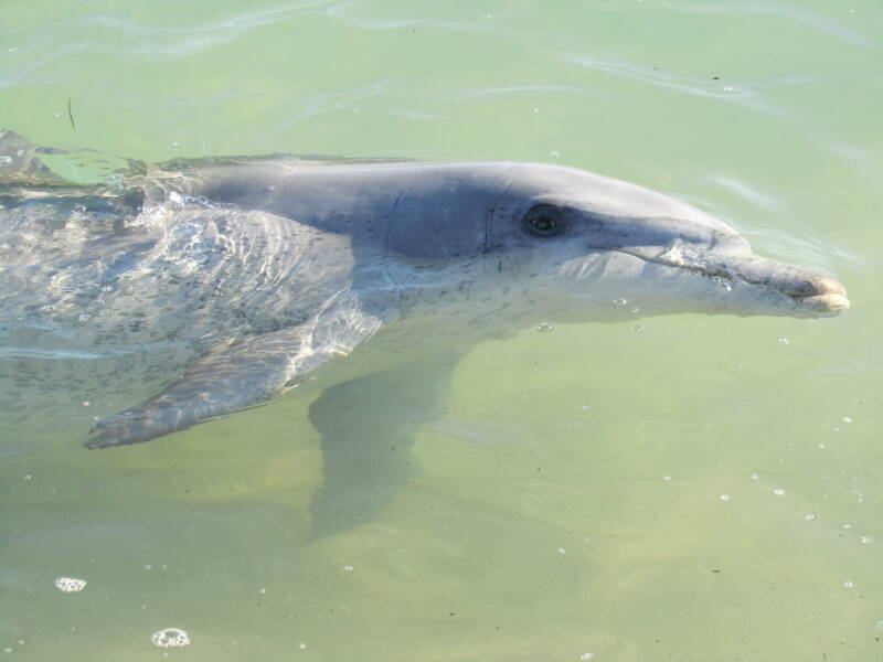 Monkey Mia is beroemd om zijn kudde tuimelaardolfijnen die er al sinds de jaren 60, elke morgen een visje komen eten. Parelvisser zijn hier indertijd mee gestart maar tegenwoordig houdt de overheid toezicht op het gebeuren. De dolfijnen krijgen tegenwoordig maar een paar vissen zodat ze blijven jagen.