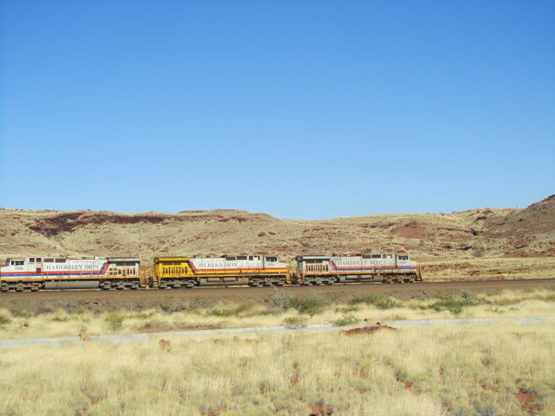We hebben weeral een lange reisdag voor de boeg van meer dan 500 km, en deze keer is het landschap erg eentonig en het is superwarm. We volgen de treinroute richting Karratha en Roebourne. We rijden door mijnwerkersgebied en we kijken onze ogen uit als we alweer een goederentrein van ongeveer 2 km lang kruisen. Daarna gaat het via Port Hedland en Pardoo.